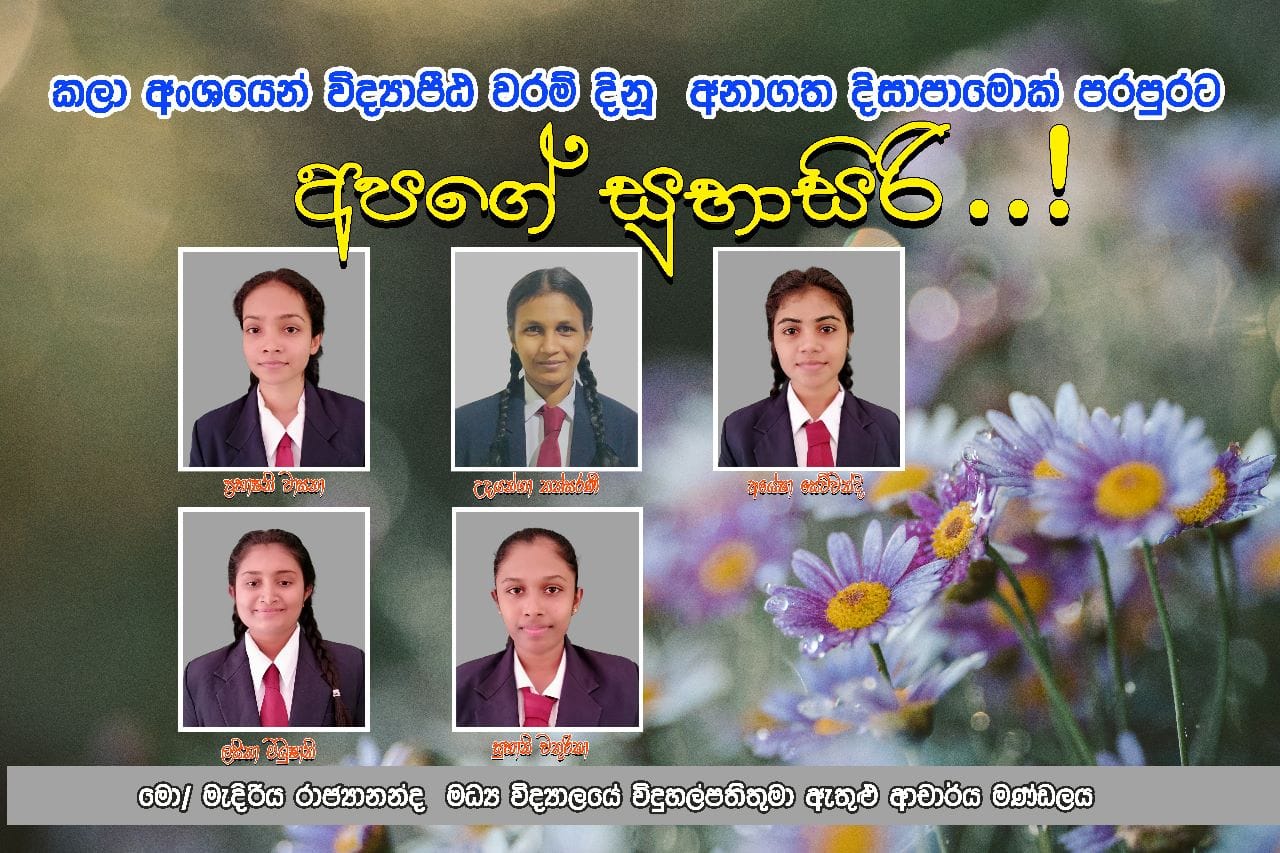 කලා අංශයෙන් විද්යාපීඨ වරම් ලබා ගැනීමට අප පාසලේ සිසුවියන්ට හැකියාව ලැබුණි.
