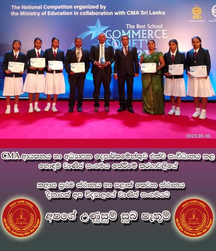 හොඳම වාණිජ සංගමය තේරීමේ තරඟාවලියේ කලාප ප්රථම ස්ථානය හා පළාත් තෙවන ස්ථානය දින ගැනීමට අප විද්යාලයේ වාණිජ සංගමයට හැකියාව ලැබුණි.